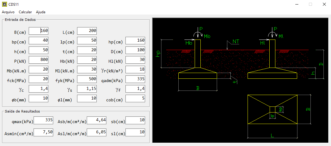 São 2 programas: O CDS11.exe em VB6, que atua no Windows, em console, calculando uma sapata retangular rígida pela NBR-6118/2023 e o CDS11.vlx em Visual Lisp que a desenha em software CAD com suporte a códigos Lisp, extensões LSP, FAS ou VLX.